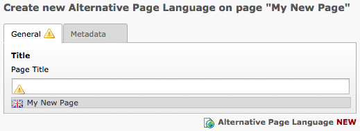 Um Inhalts-Blöcke zu übersetzen, müssen Sie zunächst die Seite selbst übersetzen, durch die Schaffung eines „Alternative Seitensprache“ Datensatzes für die in Frage kommende Seite: