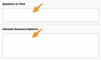 Nous vous suggérons d’utiliser un titre significatif pour la question, par exemple « Dîner de gala » ou « Assemblée générale District 102W », et d’utiliser ce titre à la fois pour les champs « Question ou texte » et « Réponses/options autorisées » de cette question (ou de ce méta-événement) :