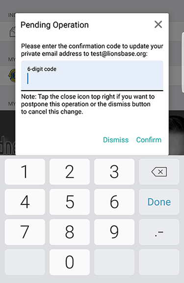 De wijziging van een e-mailadres is onderworpen aan een extra kwaliteitscontrole. In feite zal het systeem, om een e-mailadres te wijzigen, zich ervan vergewissen dat het nieuwe e-mailadres het uwe is door u een verificatiecode te sturen. Zodra u het bericht krijgt, kunt u teruggaan naar het dashboard in de mobiele applicatie en krijgt u de lopende operaties te zien: